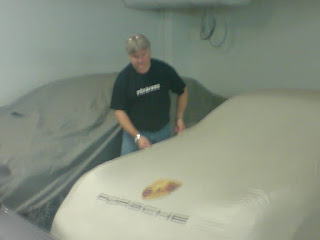 En liten suddig paparazzi-bild på någon som uppenbarligen smusslar med en av sina miljon-bilar i sitt garage. Jag vet inte om jag inbillar mig, men visst f** står det "föråkare" på tröjan? Har jag missat något, kan man sälja spilloljan till andra mindre nogräknade bolag eller är skrotpriset uppe i den samma gamla nivå som när ryss-maffian täljde guld med smörknivar?